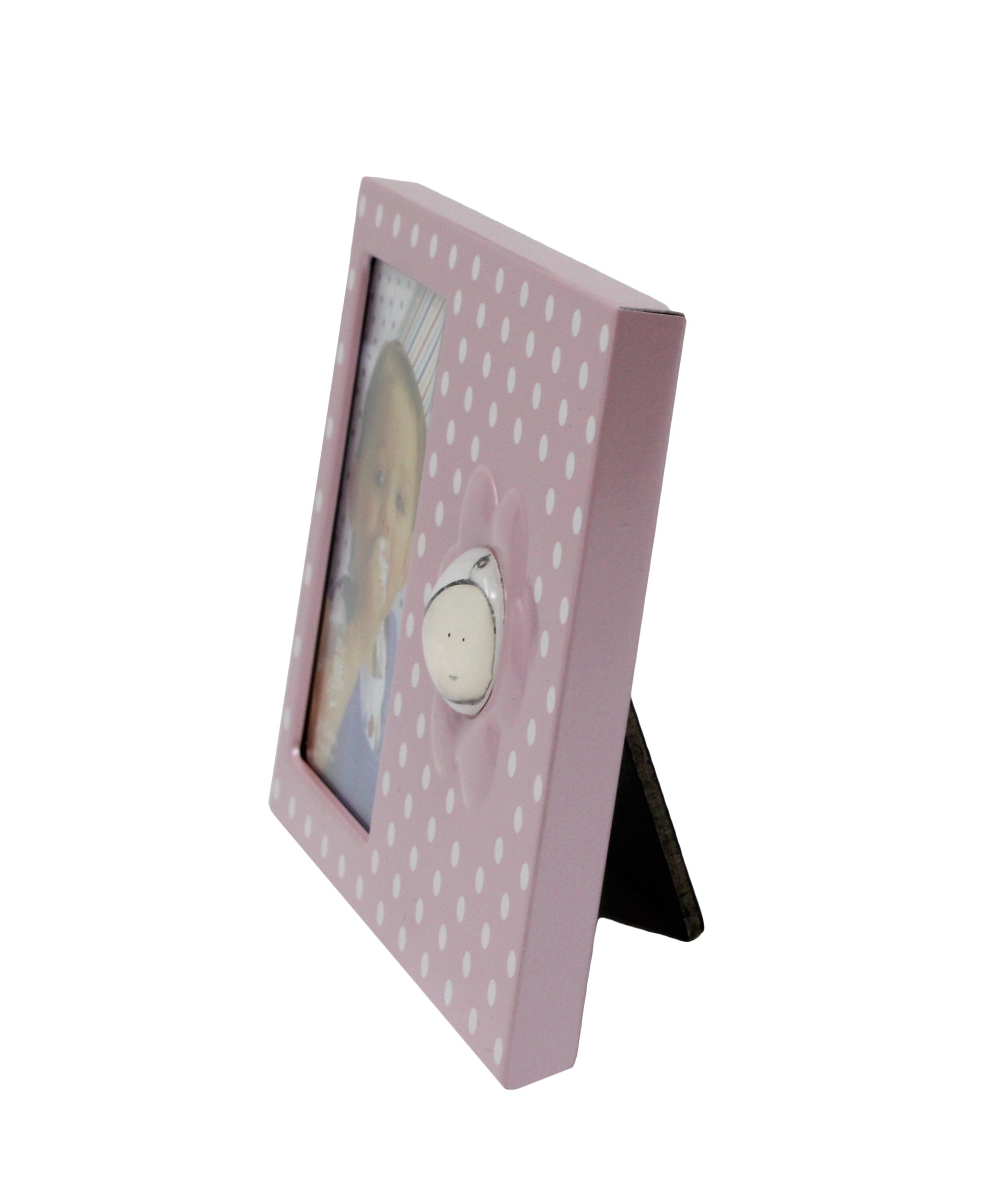 Dieser kleine Bilderrahmen ist ein zauberhaftes Detail, das jedem Babyfoto einen besonderen Platz schenkt. Das feine Punktmuster wirkt weich, freundlich und kindlich, ohne aufdringlich zu sein, und passt dadurch perfekt in jedes Baby- oder Kinderzimmer.