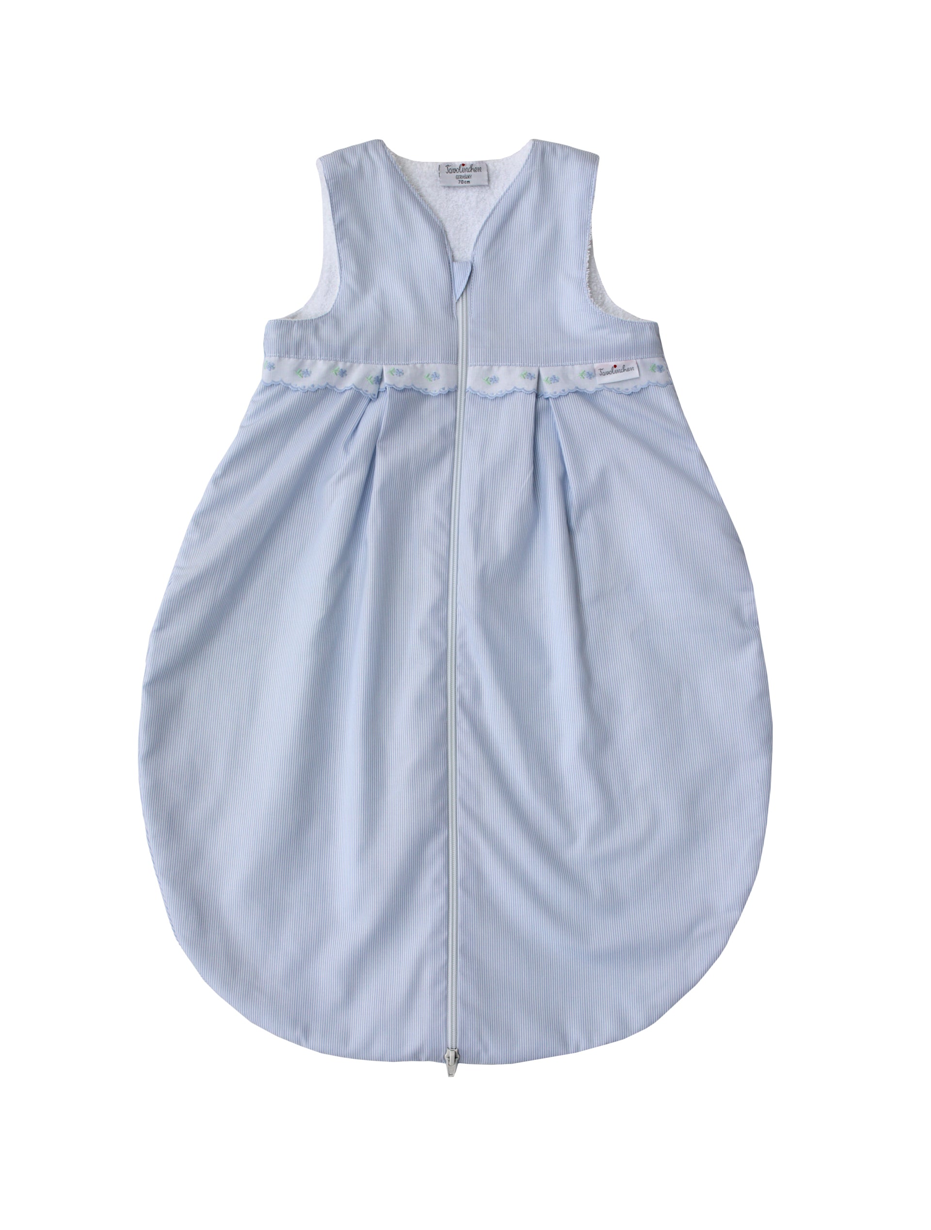 The pretty embroidered border in pink or light blue also makes the sleeping bag a visual highlight in the baby's crib. Lovely details like the delicate gathers below the chest and the gentle A-line design ensure plenty of freedom of movement and sweet dreams. The long zipper with a practical chin guard allows for quick diaper changes and easy dressing and undressing – even at night, without completely waking the baby.