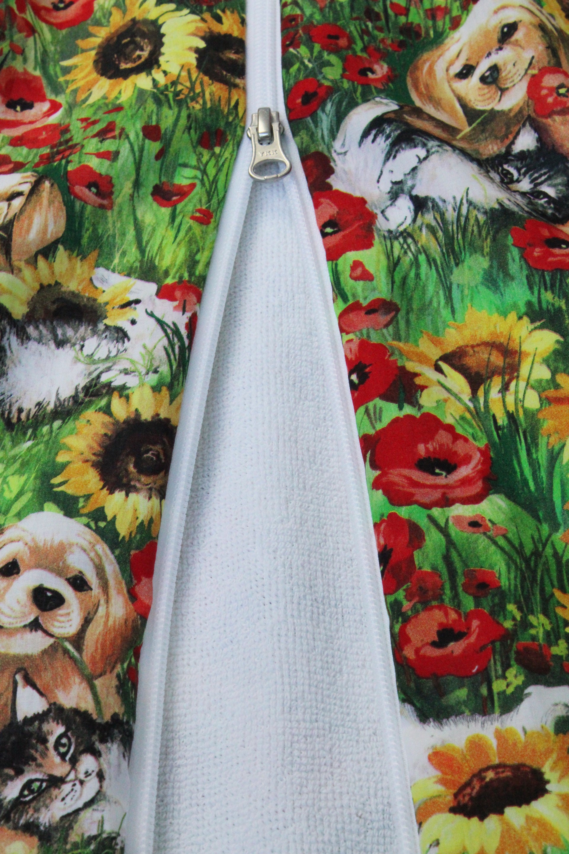 Tavolinchen terry sleeping bag "Herald with friend" – Soft baby sleeping bag with colorful dog motif for spring and summer
