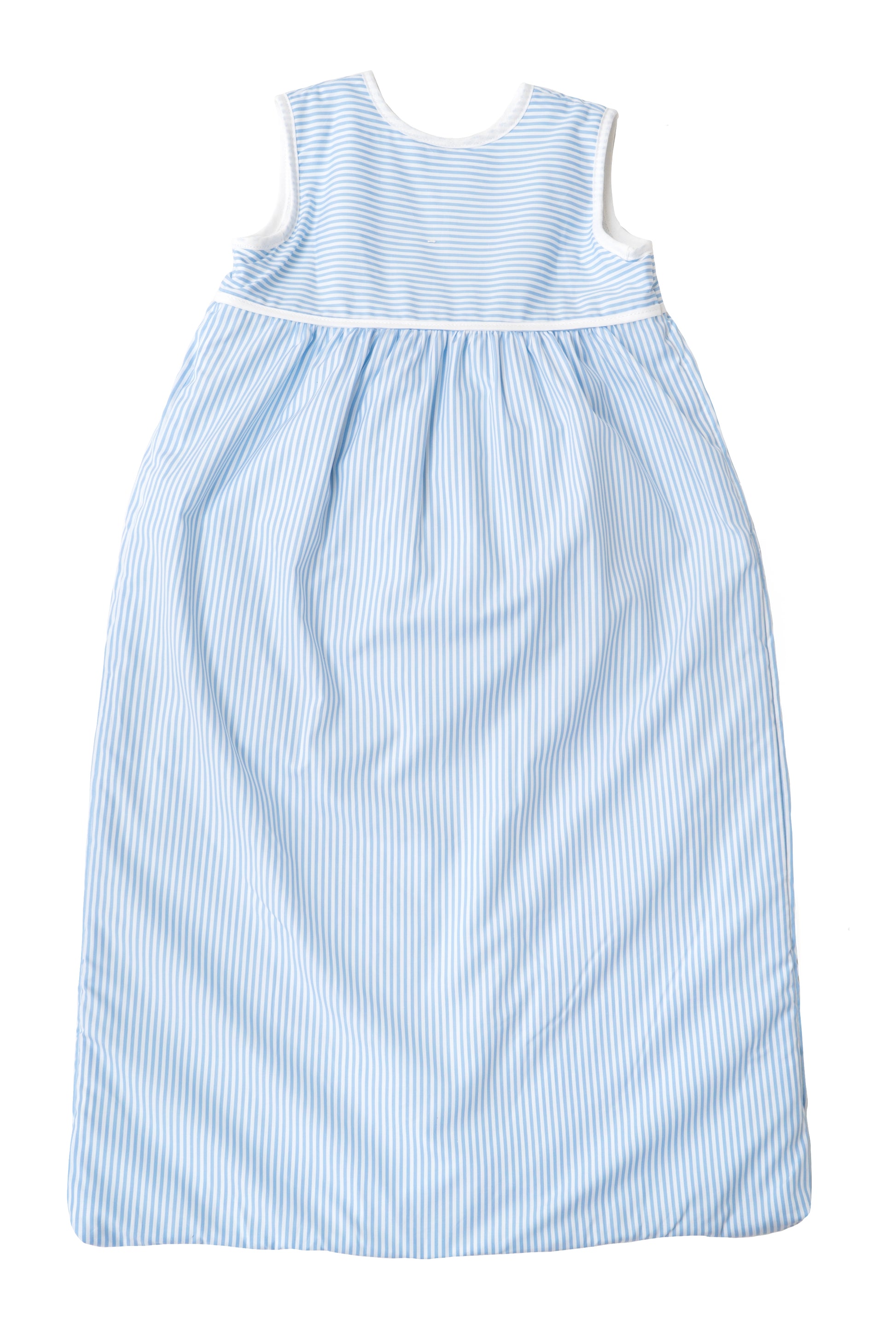 The Tavolinchen terry cloth sleeping bag's width allows your child plenty of legroom , which is important for a comfortable night's sleep . For safety reasons, the zipper opens from the bottom up . The inner fabric allows for pleasant temperature regulation . The Tavolinchen terry cloth sleeping bag has a tog value between 1.0 and 2.5 .
