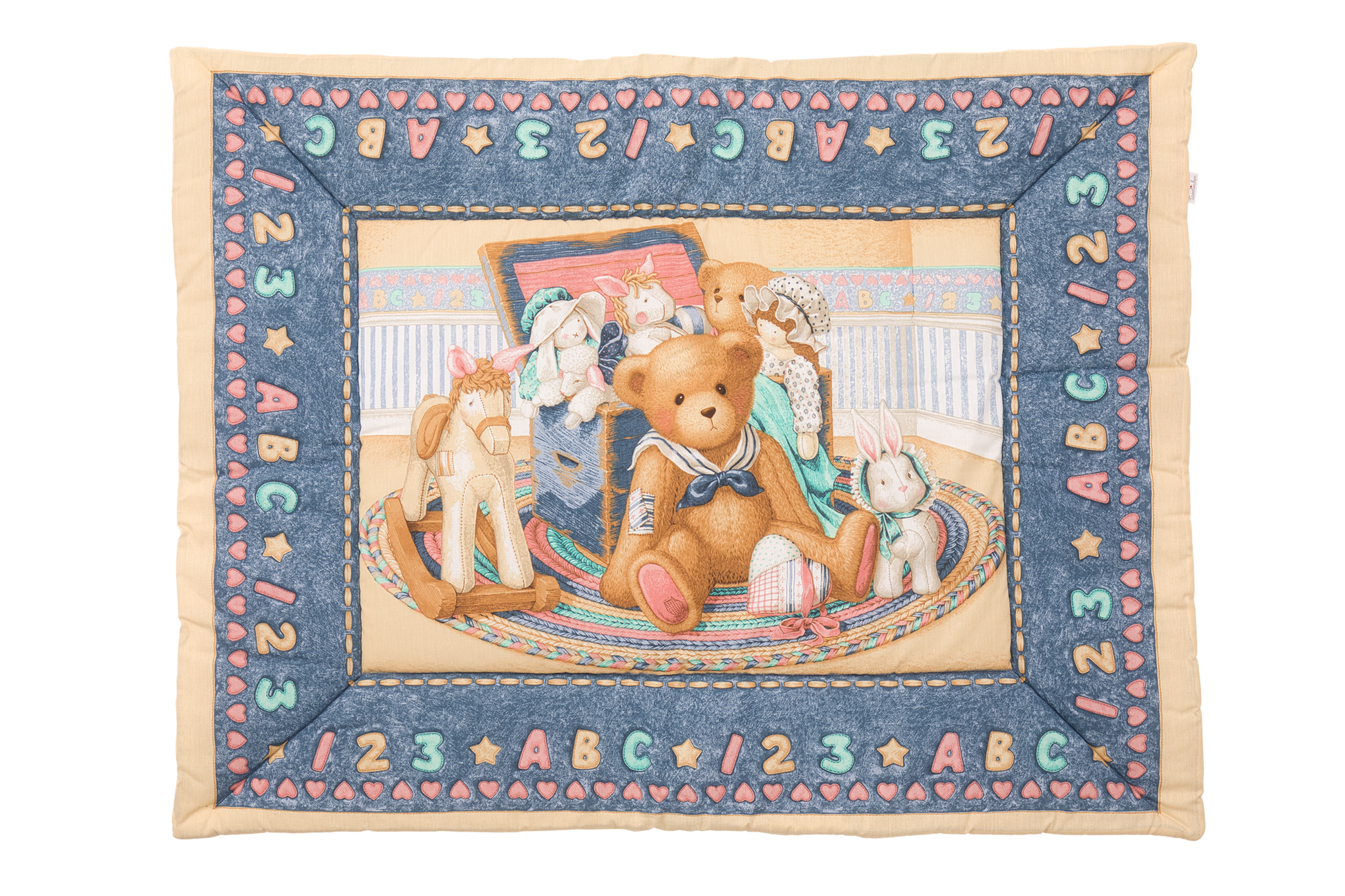 The blanket is very soft and well-lined with breathable polyester fleece . The outer fabric is a digital print on a cotton fabric. The back is made of a soft, cozy terry cloth , which is also 100% cotton .