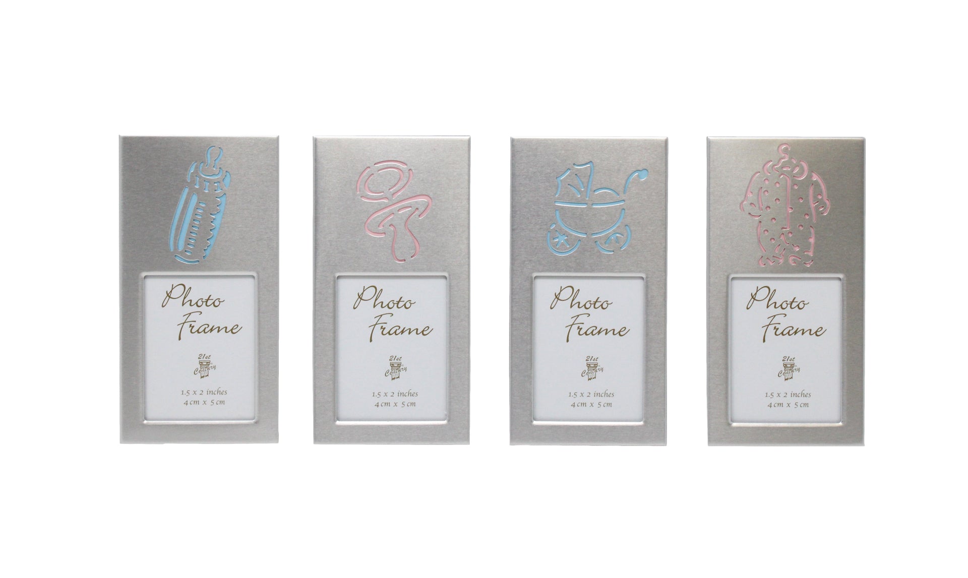 Mit ihrer edlen, silberfarbenen Oberfläche und den fein ausgeschnittenen Baby-Motiven wirken die Rahmen modern, hochwertig und zugleich verspielt.