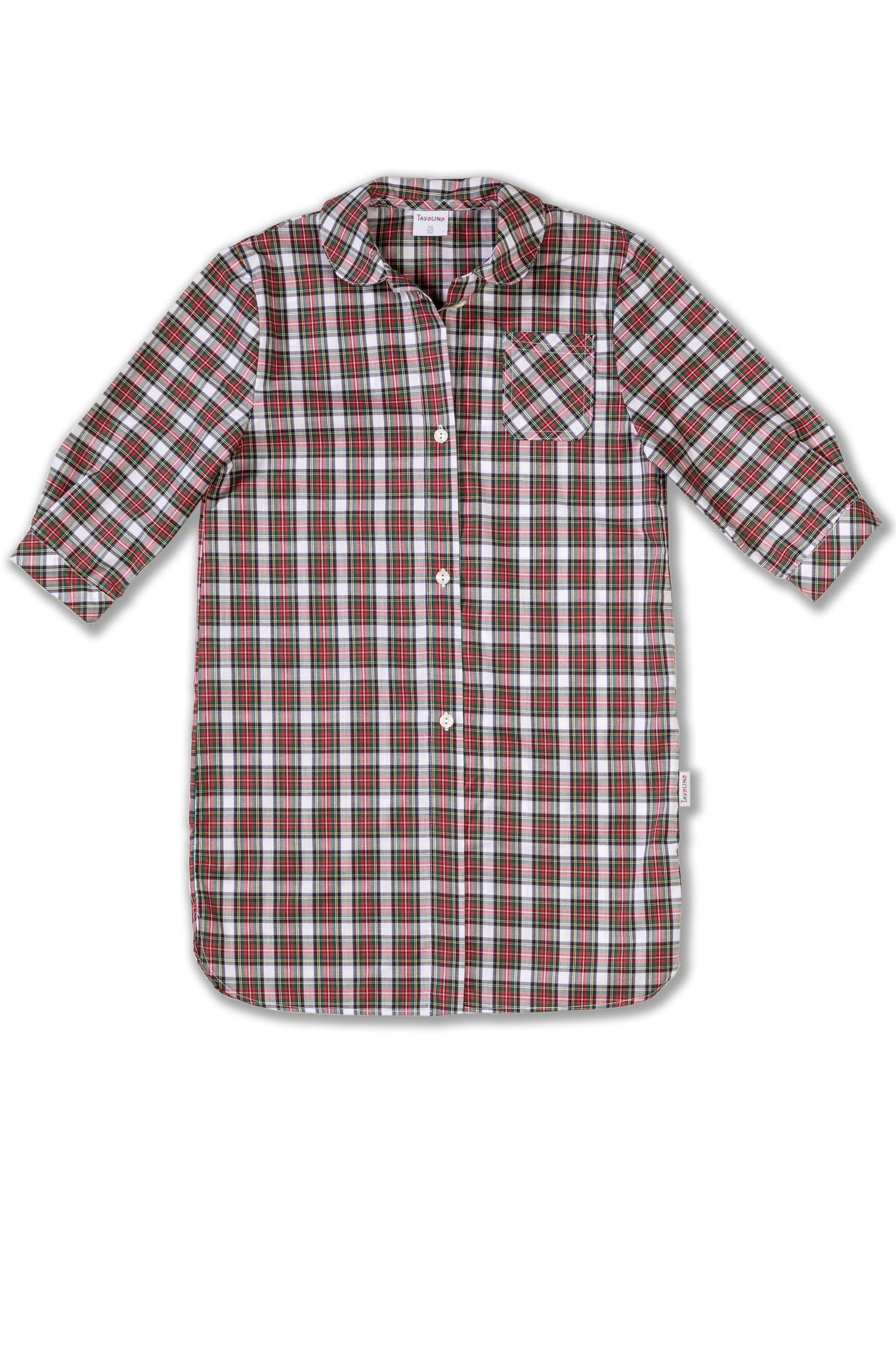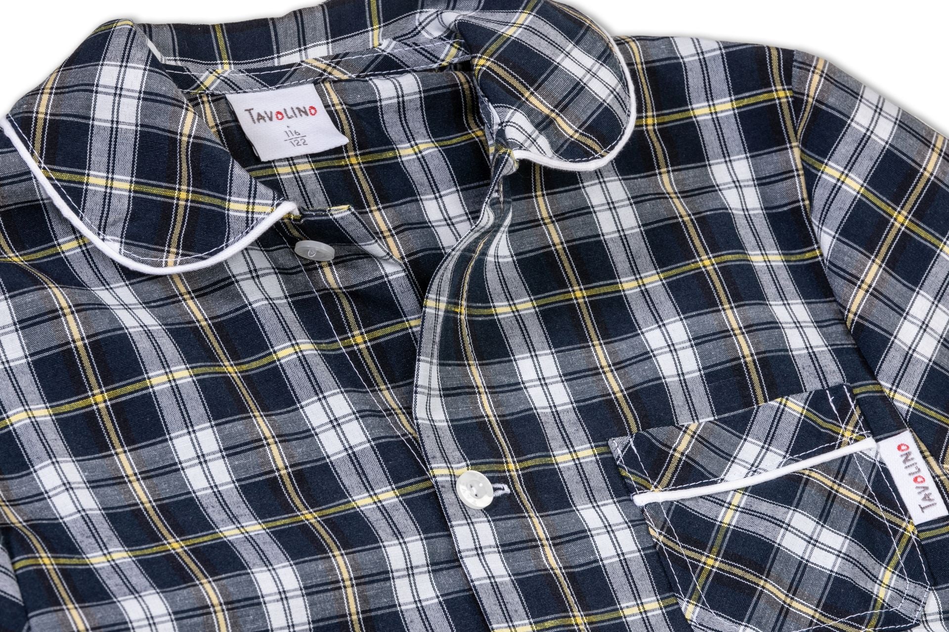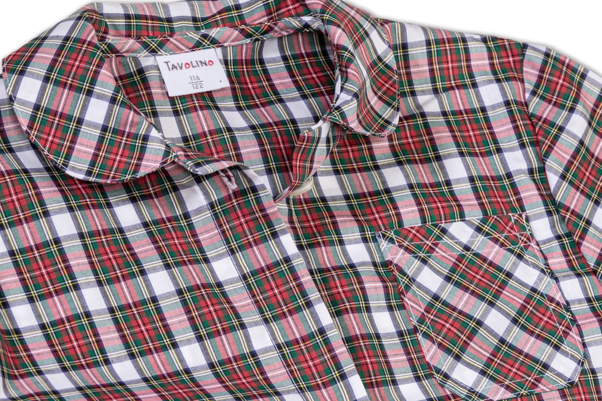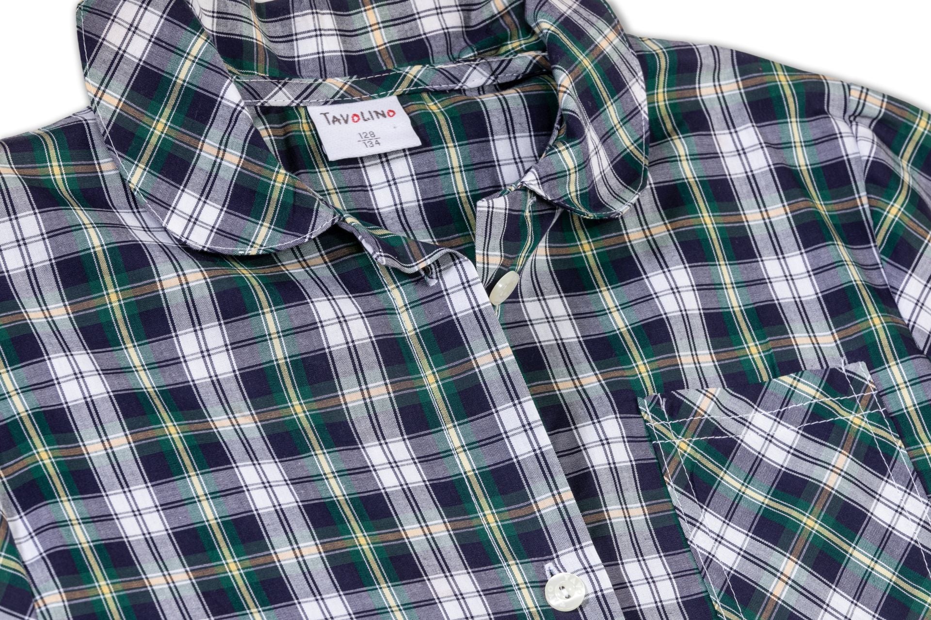 A classic, long-sleeved nightshirt in Hamburg check for boys and girls from TAVO. It features a patch breast pocket , button placket , and Peter Pan collar .