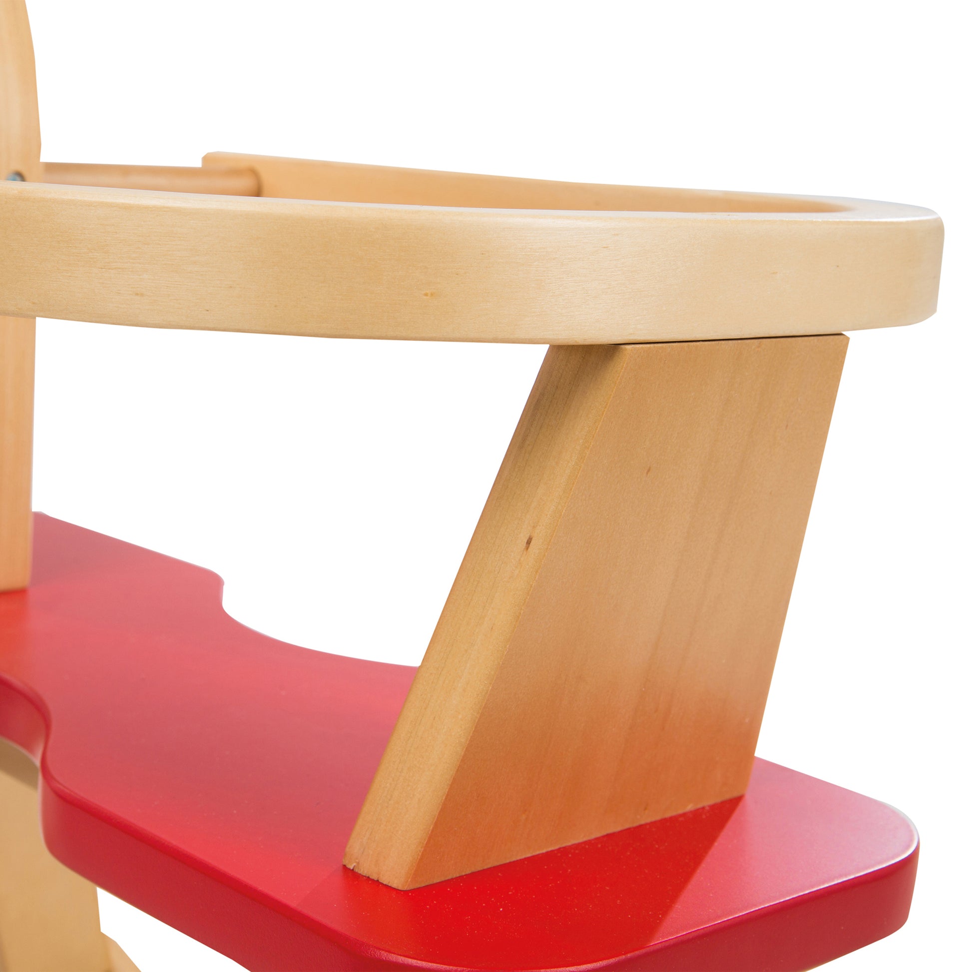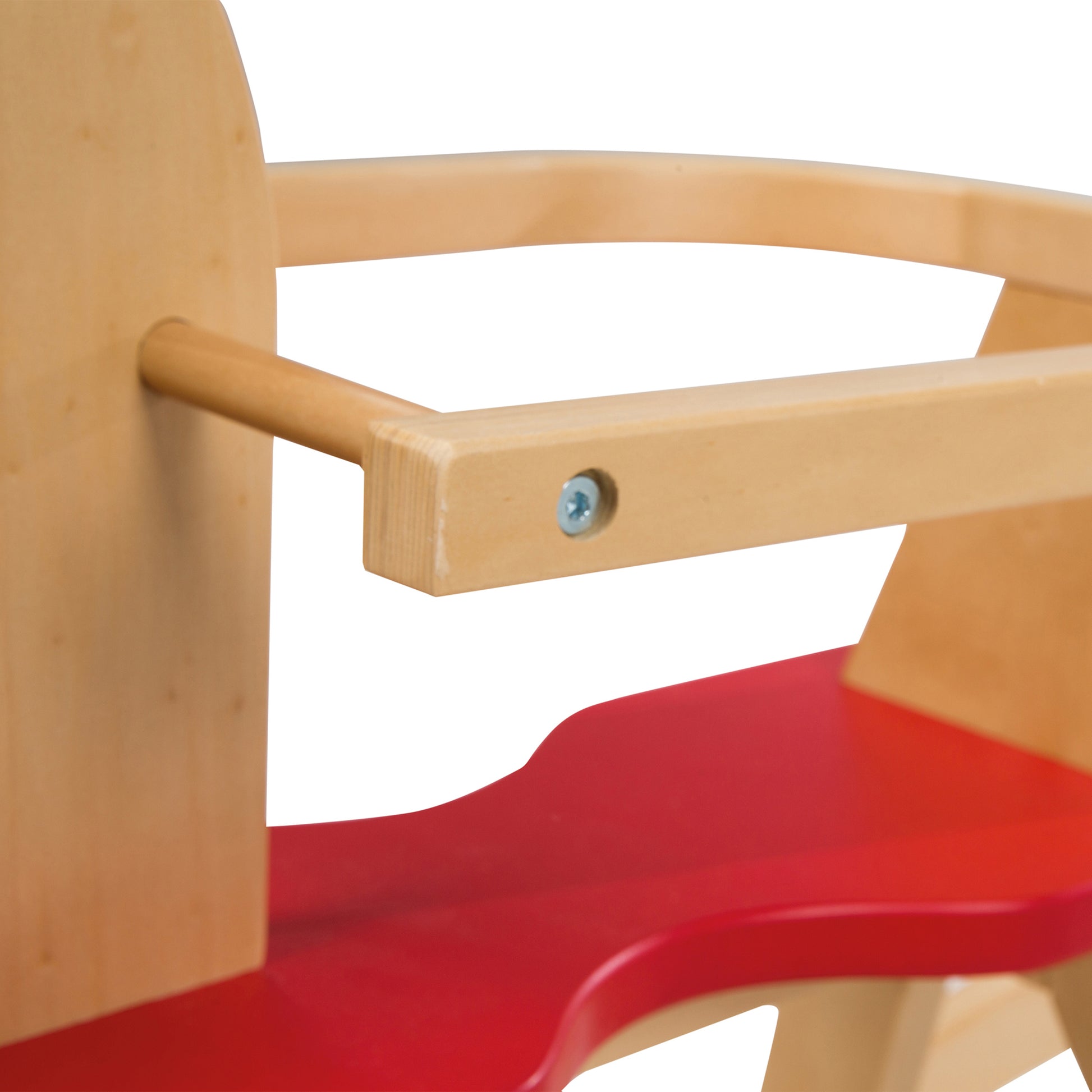 Mit diesem süßen Schaukeltier aus hochwertigem Massivholz und rotem Sitz fördern Sie die Motorik, den Tastsinn und die Aktivität Ihres Kindes.
