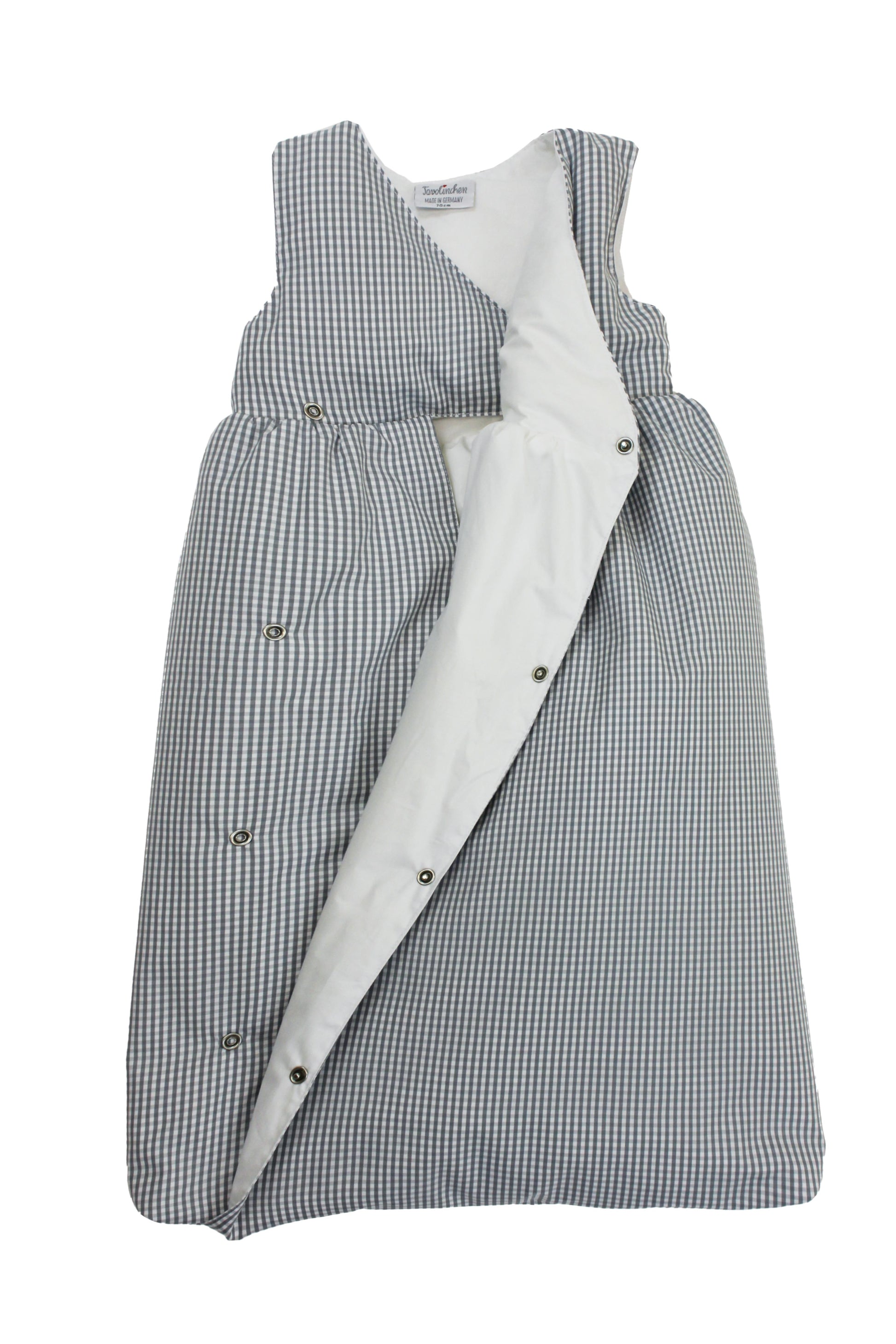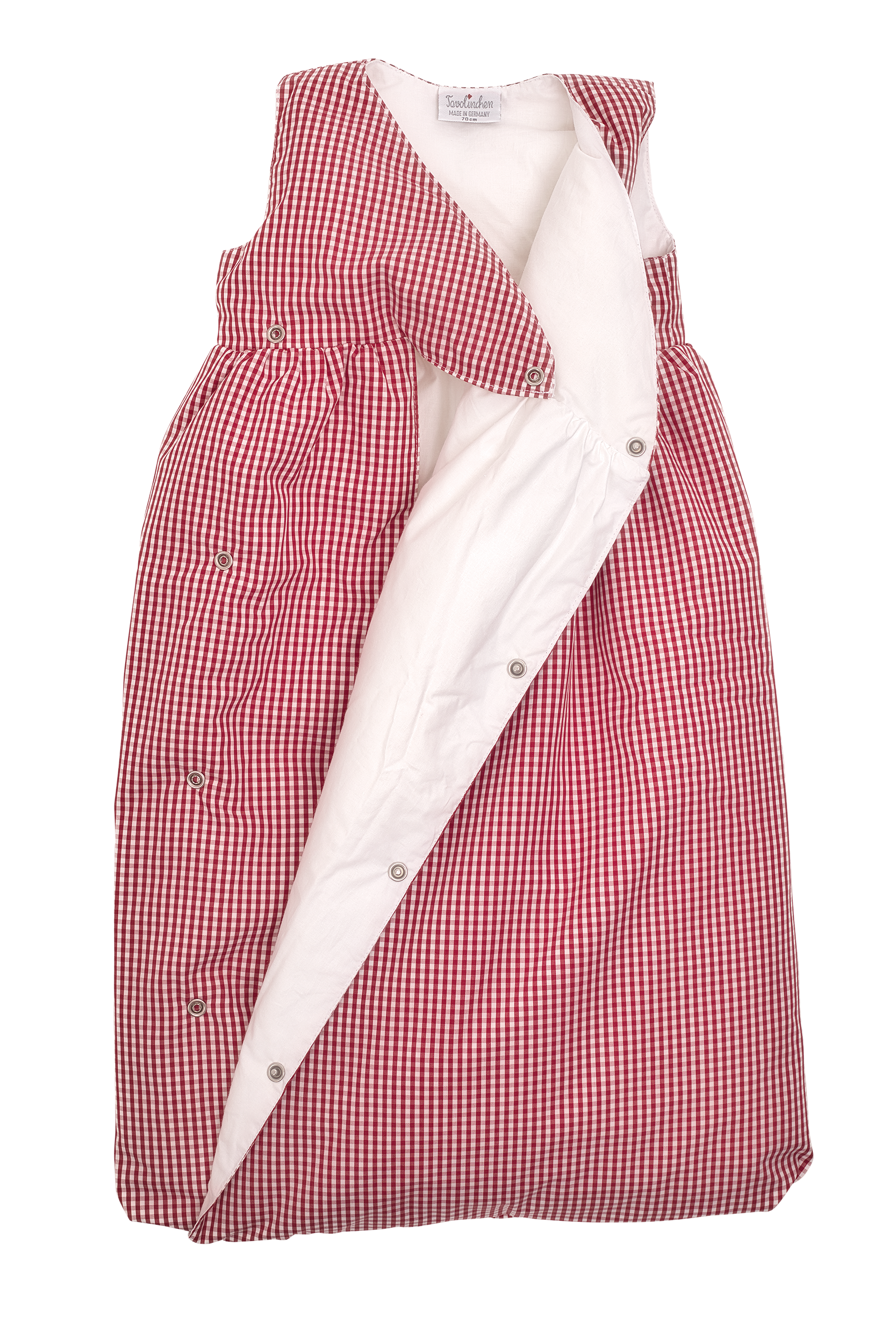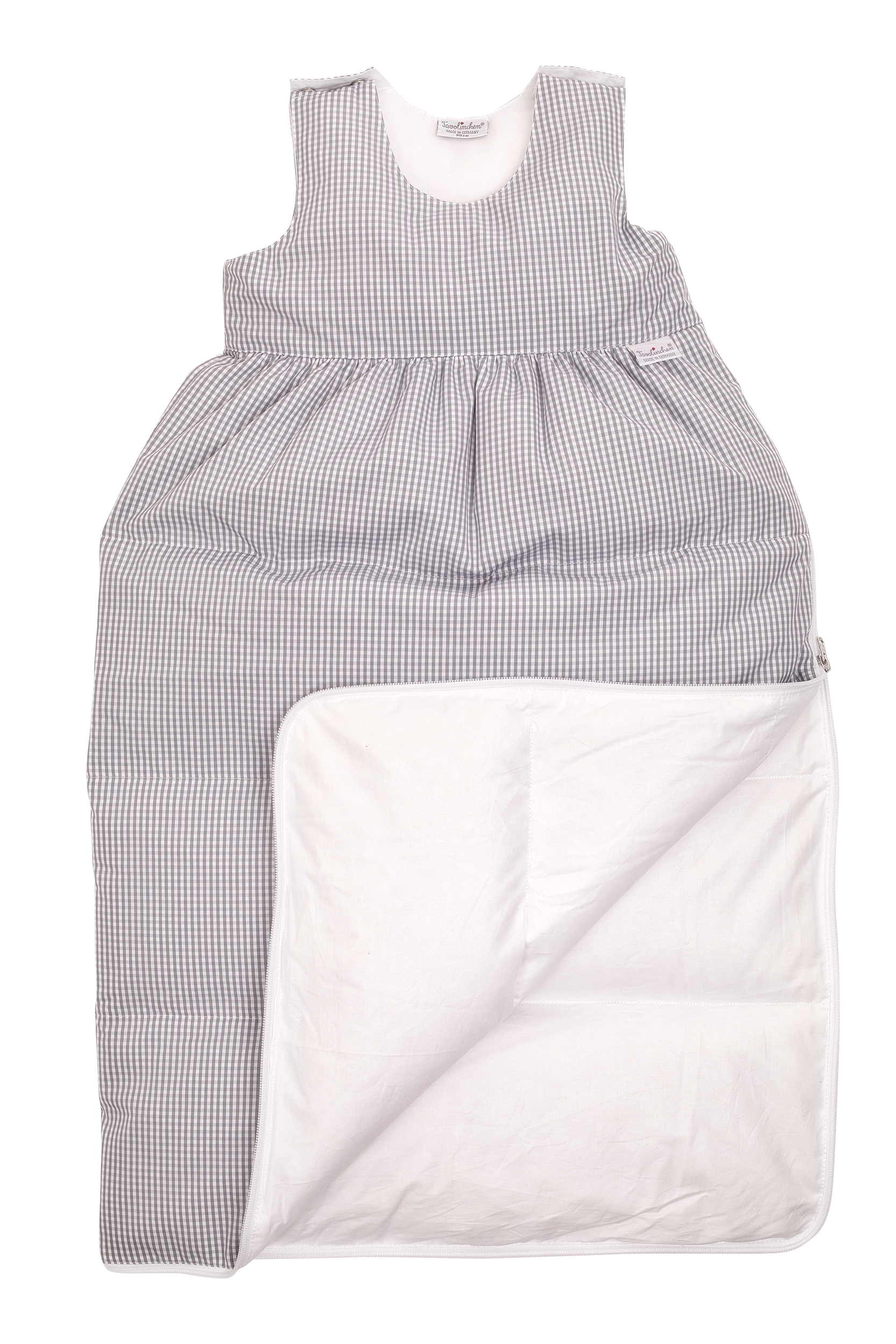 (Note: This sleeping bag is only available with a full-length zipper starting from size 80 cm; in sizes 60 – 70 cm it is supplied in a wrap-around design, i.e. with snap fasteners)