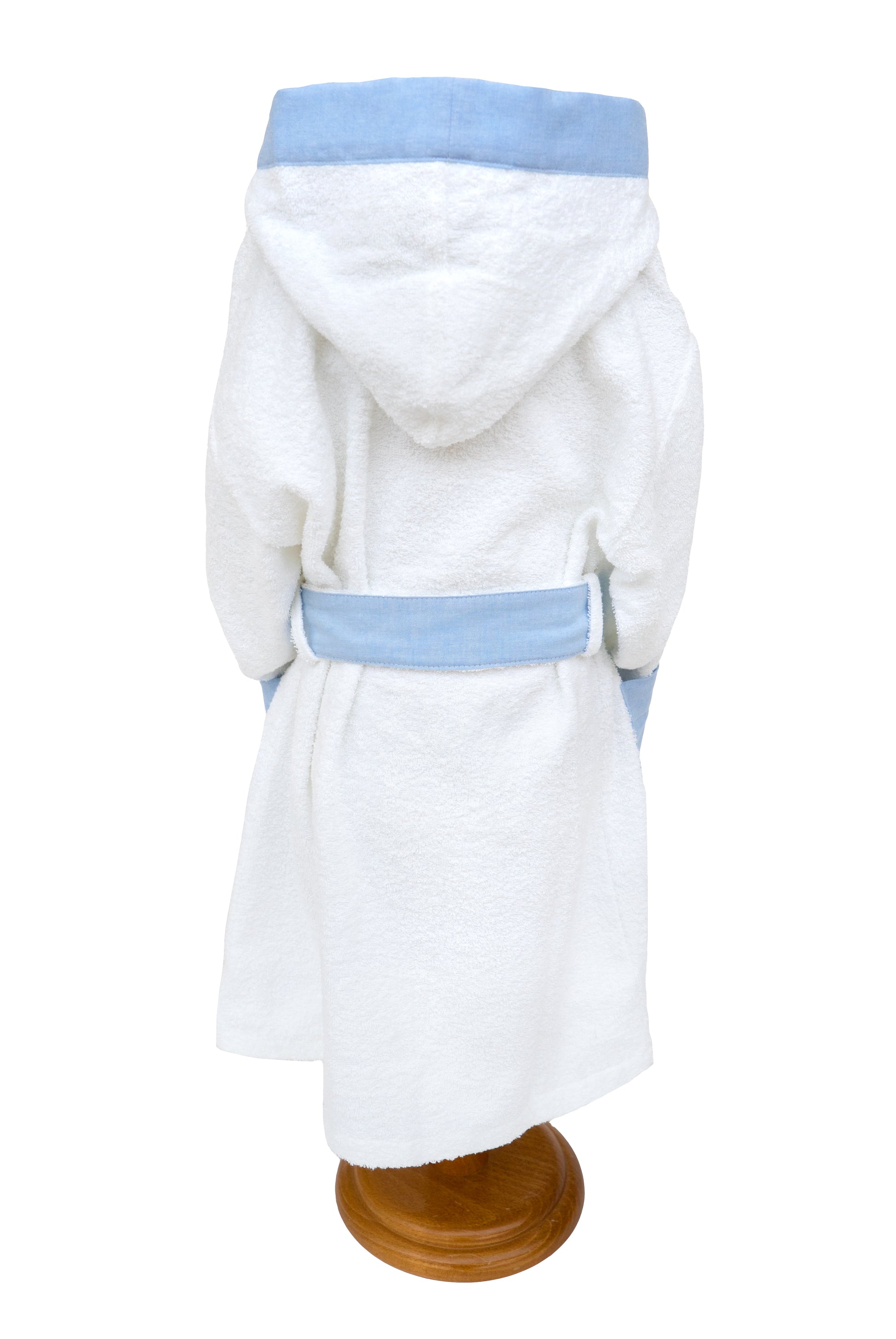 Un magnifique peignoir en éponge TAVO, parfait en toute saison. La bordure est en chambray 100 % coton.