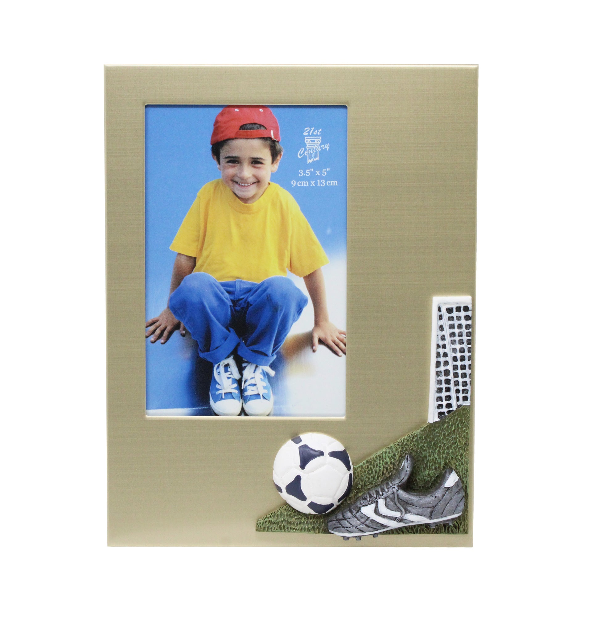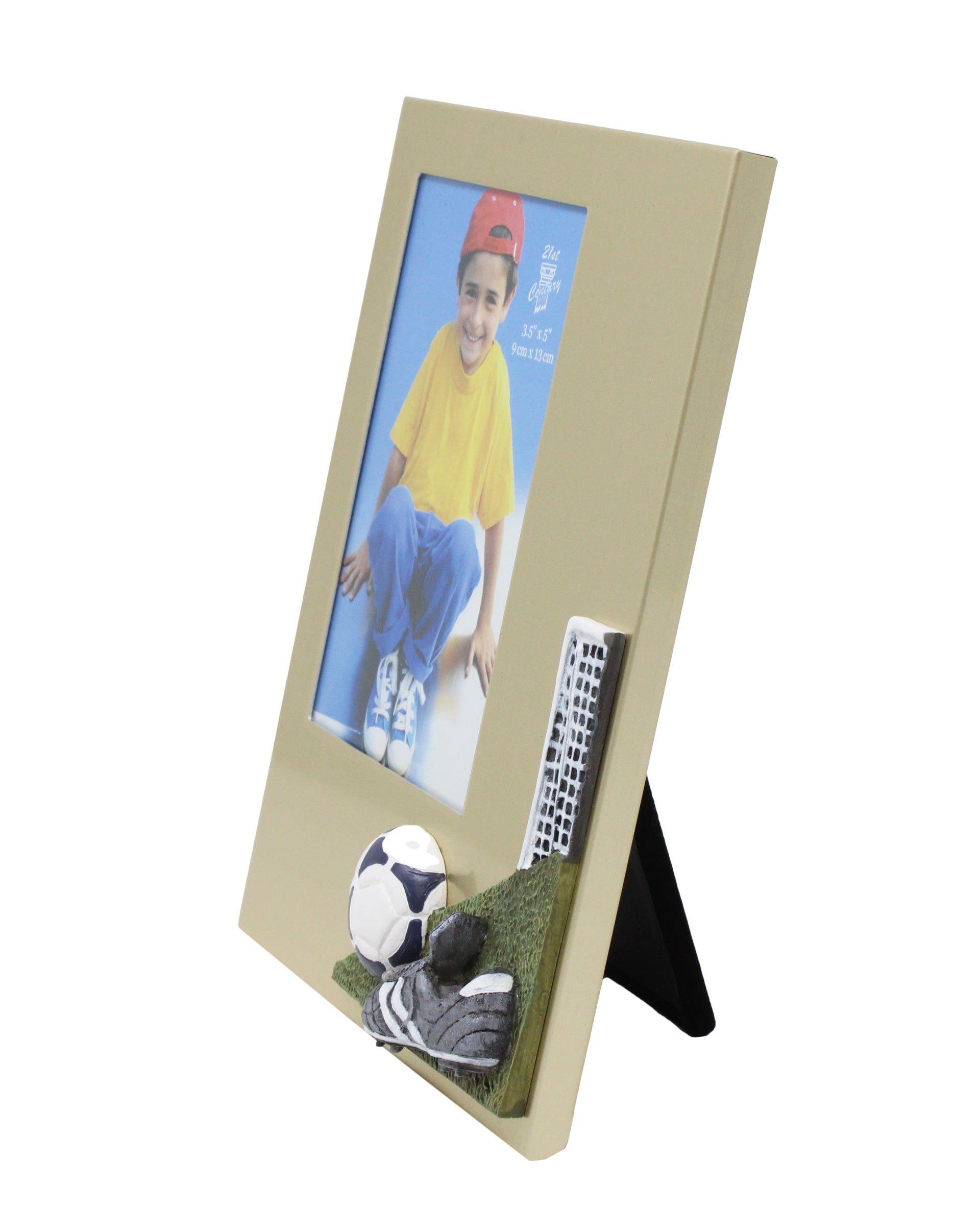 Ein liebevoll gestalteter Bilderrahmen für kleine Fußballfans! Das sportliche Design mit Fußball, Schuh und Tor bringt sofort Bewegung und Spielfreude ins Kinderzimmer. Die plastischen Details wirken lebendig und machen den Rahmen zu einem besonderen Highlight im Regal oder auf dem Schreibtisch.